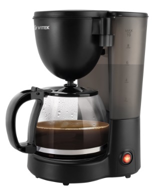 Coffee Maker Vitek VT-1500, Power output 600W, capacity 1,25l, removable filter element, black капельная для молотого кофе постоянный фильтр одновременная раздача на 2 чашки корпус из пластика.