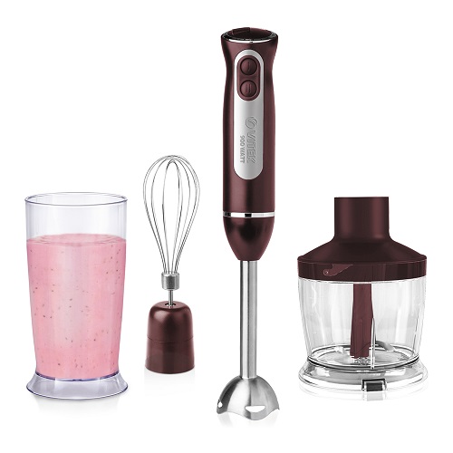 Блендер VITEK VT-8535, 900W power output, mixing bowl 0,5l, chopper, whisk attachment, foot stainless steel, 2 speed levels plus turbo level, bordo максимальная мощность: 900 Вт механическое управление измельчитель, емкость 0.5 л мерный стакан, емкость 0.7 л. корпус из пластика плавная регулировка скорости