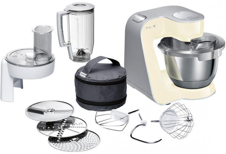 Food processor Bosch MUM58920, 1000W power output, stainless steel bowl 3.9l, mixing bowl 1.25l, whisk, beater, dough hook, continuous slicer shredder (cutter disc, rasping disc, grater disc medium-fine), accessory bag, splash protection, 7 speeds level мощность: 1000 Вт объем чаши: 3.9 л блендер, терка, насадка для взбивания компактное хранение насадок