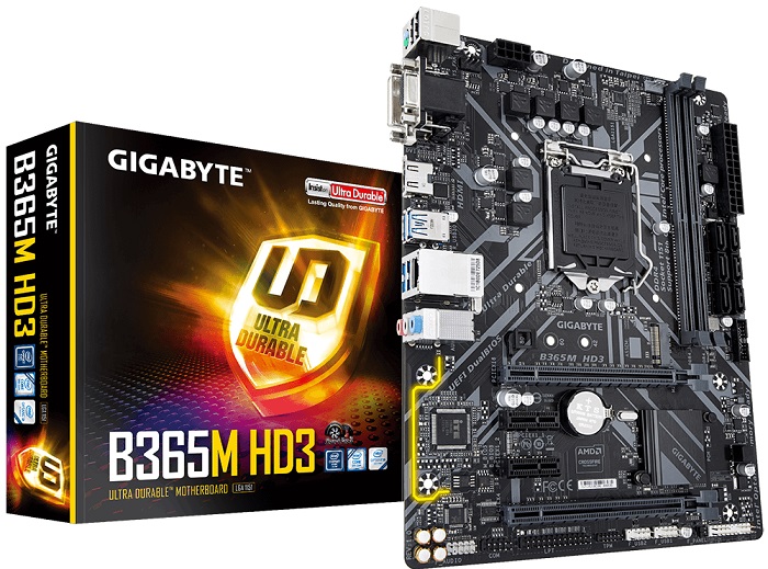 Материнская плата Gigabyte B365M HD3 1.0 mATX, Intel® B365, LGA1151 материнская плата форм-фактора microATX сокет: LGA1151 чипсет Intel B365 2 слота DDR4 DIMM, 2133-2666 МГц. поддержка CrossFire X разъемы SATA: 6 Гбит/с - 6