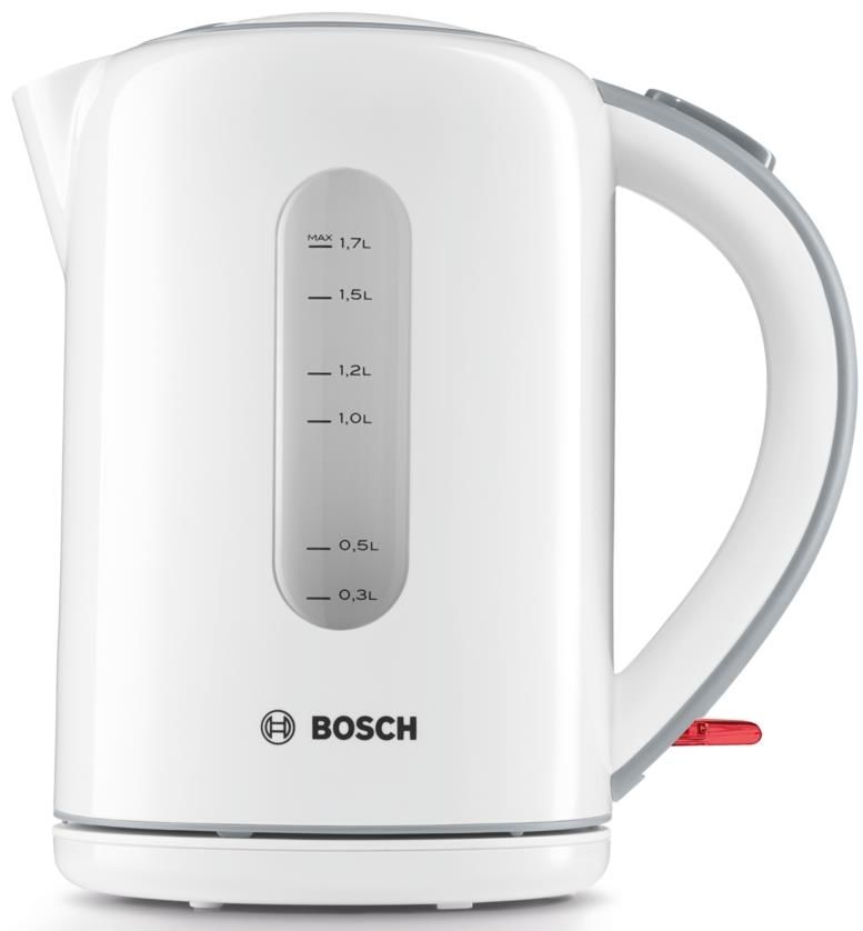 Kettle Bosch TWK7601, Plastic, 2200W, 1,7l, concealed heating element, 360° swivel base, white объем 1.7 л мощность 2200 Вт. индикация включения закрытая спираль установка на подставку в любом положении пластиковый корпус