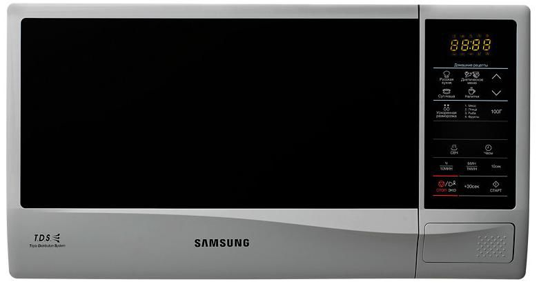 Microwave Oven Samsung ME83KRS-2/BW, 23l, 800W, mechanical control, , 28.8 cm rotating plate, defrost function,interior lighting, silver Объем камеры, л: 23 Диаметр поворотного стола, см 28.8 Внутреннее покрытие биокерамика Тип открывания дверцы кнопка Мощность микроволн, Вт 800 Конвекция нет Вертел нет Тип управления электронный Дисплей да Часы да Подсветка да Электропитание Потребляемая мощность , Вт 1150 Высота, см 27.5 Ширина, см 49 Глубина, см 36 Вес, кг 11.3 Цвет серый Доп. особенности Био-керамичсекое покрытие Производитель Samsung