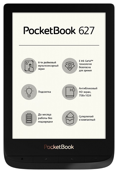 PocketBook 627 6" E Ink®Carta™ Gift Edition Gold электронная книга 6" E-Ink Carta, с подсветкой емкостный сенсорный ввод разрешение 1024x758 16 оттенков серого Wi-Fi карты памяти microSD