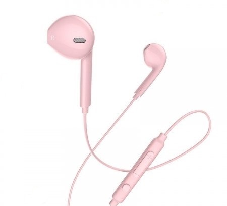Hoco M55 Memory sound wire control earphones with mic Pink