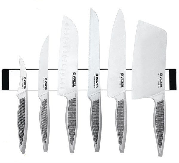 Set de cutite Vinzer Sakura 89116 Количество предметов 7 Материал лезвия сталь Материал рукоятки сталь Материал подставки магнит Нож поварской 1 Нож Сантоку 1 Нож хлебный 1 Нож универсальный 1 Нож для овощей 1 Топорик 1 Производитель Vinzer
