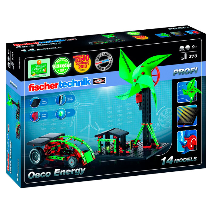 FischerTechnik Profi - Oeco Energy Рекомендуемый возраст : 9+ Модель : PROFI Oeco Energy Тип : Конструктор Другие функции : Солнечная энергия, 14 модели, 370 компонентов