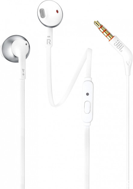 Earphones JBL T205 Chrome с микрофоном вкладыши динамические разъем mini jack 3.5 mm вес 14.3 г