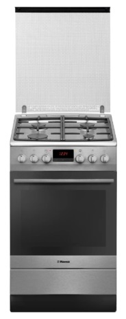 Gas cooker HANSA FCMS58224 Газовая плита Тип: Отдельностоящая Класс энергопотребления: А-20 % Материал поверхности : нержавеющая сталь Цвет: Серый Цвет ручки: Серый Материал дверцы: Стекло Полезный объем: 67 л Вес 47кг Дисплей Потребление духо