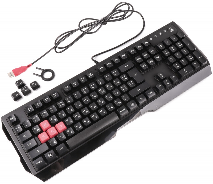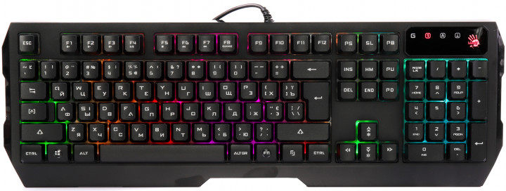Gaming Keyboard Bloody Q135, Multimedia Hot-Keys, Neon Glare, Game Mode, Water-Resistant, Black, USB