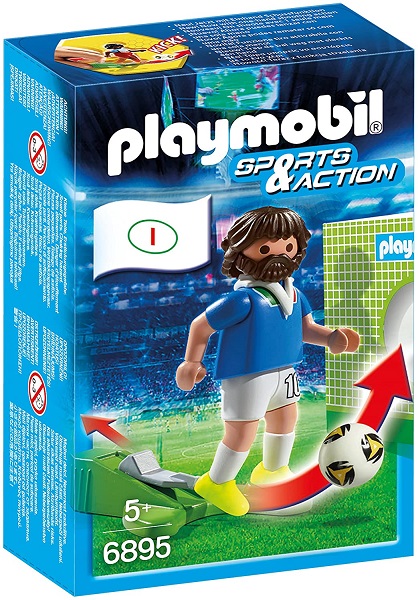 Playmobil National Player Italy PM70485 Фигуры: 1 футболист. Аксессуары: 1 голевая стена, 1 пачка цифровых этикеток, 1 пачка пустых этикеток, 1 футбол