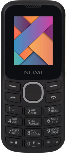 Мобильный телефон Nomi i184 Black-Grey поддержка двух SIM-карт экран 1.8", разрешение 220x176 без камеры память 32 МБ, слот для карты памяти Bluetooth объем оперативной памяти 32 МБ аккумулятор 800 мА?ч ШxВxТ 47.90x113.10x15.30 мм