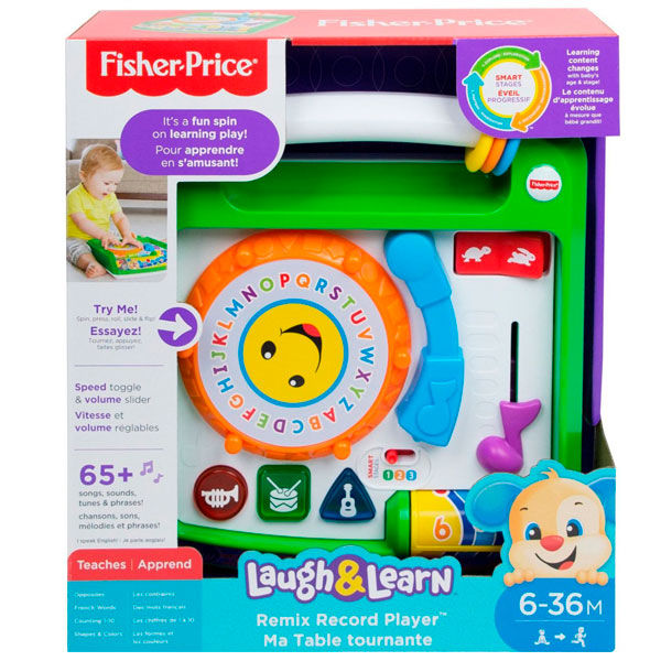 Fisher-Price Player Muzical (rus-engl) Mattel Fisher-Price "Музыкальный проигрыватель" (рус/анг) Первый музыкальный проигрыватель для Вашего юного ди-джея! Музыкальный проигрыватель с технологией Smart Stages позволяет выбирать уровень обучения, который наиболее подходит Вашему малышу. Когда малыш будет крутить пластинку, проигрыватель воспроизведёт различные песни, мелодии и фразы. Переключатель с черепашкой и кроликом, а также переключатель-нотка научат малыша противоположностям, а на 3-м уровне нотка еще и отрегулирует громкость проигрывания песен. Тип батареек: 3 х ААA / LR0.3 1.5V (включены) Рекомендуемый возраст: от 6 до 36 месяцев