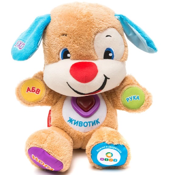 Fisher-Price Catelul Smart Stages (ru) С этим щенком Ваш малыш уже с самого раннего детства в игровой форме сможет получать знания и запоминать новые понятия. Причем родители могут сами выбрать уровень сложности и заниматься с крохой. А забавные мелодии и песенки в исполнении игрушки добавят процессу позитива и поднимут настроение малыша, поэтому к занятиям он будет относиться с удовольствием и интересом ждать их. Характеристики Fisher Price Catel Inteligent RU (CJV61) Тип интерактивная игрушка Чехол плюш Персонаж Собачка Размер 25х18х33 см Производитель США (сборка азия) Дополнительные спецификации на русском языке