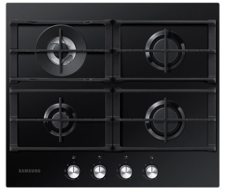 Варочная панель Samsung NA64H3030AK/WT поверхность из закаленного стекла 4 конфорки независимая установка электроподжиг газ-контроль чугунные решетки поворотные переключатели ШхГ: 60х52 смВарочная панель Samsung NA64H3030AK/WT