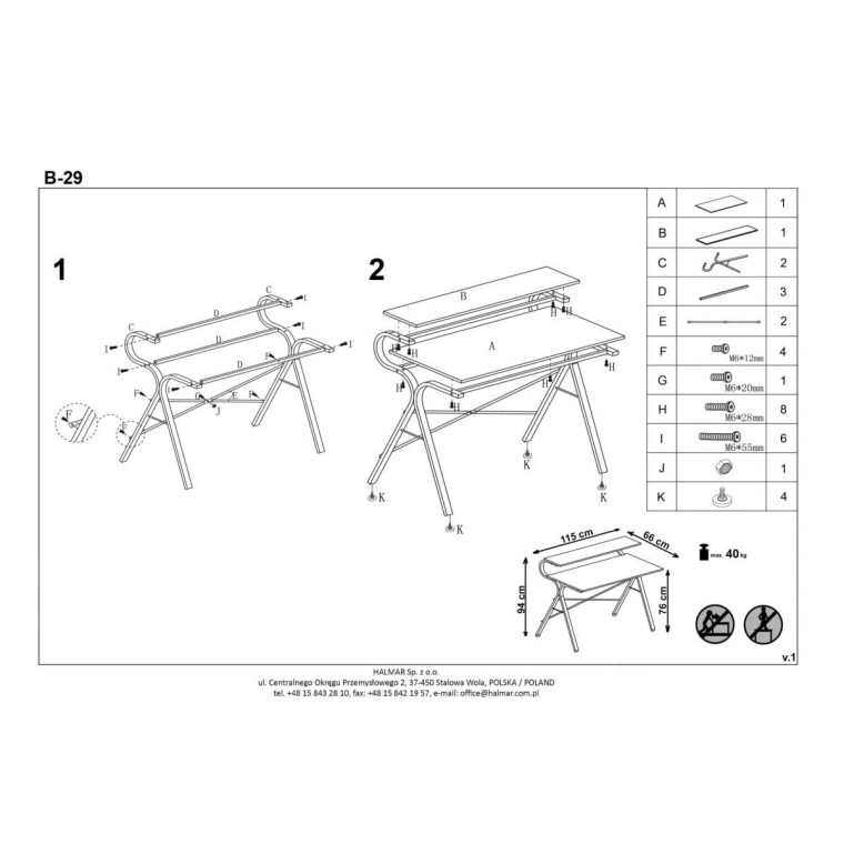 Halmar В-29 Вес: 19 кг Тип: Нераскладной Форма: Прямоугольная Ширина: 66 см Длина: 115 см Столешница: МДФ Каркас: Металл Цвет: Серый Высота: 94 см