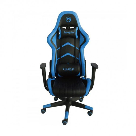 Marvo Chair CH-106 Blue 57/53 x 50 x 129/139 см Максимальный вес пользователя: 150 Кг Материал отделки - Синтетическая кожа Каркас кресла - Метал Регулировка высоты сиденья (44 - 54 cm) Регулировка угла наклона спинки Поворачивание на 360 градусов Две съемные подушки для шейной и поясничной поддержки Подъемная система: газовая цилиндрическая