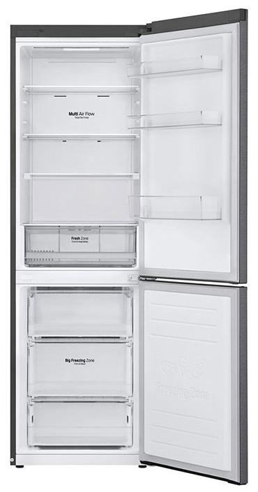 Холодильник LG GA-B459MLSL (186см/341л/А+/Full NoFrost) Холодильник комби, нижнее распололожение морозильника Размораживание - Full NoFrost Общий объем 341 л. Объем холодильной камеры 234 л Объем морозильной камеры 107 л Класс энергоэффективности A+