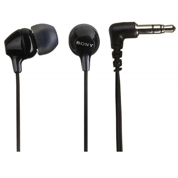 Earphones SONY MDR-EX15LP, 3pin 3.5mm jack L-shaped, Cable: 1.2m, Black внутриканальные, закрытые динамические чувствительность 100 дБ импеданс 16 Ом разъем mini jack 3.5 mm вес 3 г