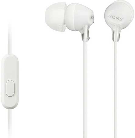 Earphones SONY MDR-EX15AP, Mic on cable, 4pin 3.5mm jack L-shaped, Cable: 1.2m, White с микрофоном внутриканальные, закрытые динамические чувствительность 100 дБ импеданс 16 Ом разъем mini jack 3.5 mm вес 3 г