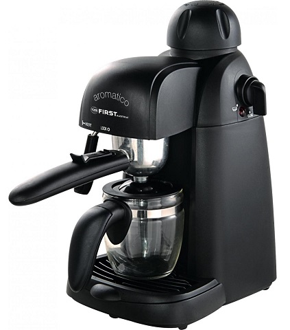 Кофеварка FIRST 005475-3 для молотого кофе давление 4 бар приготовление капучино настройка времени старта одновременная раздача на 2 чашки корпус из пластика