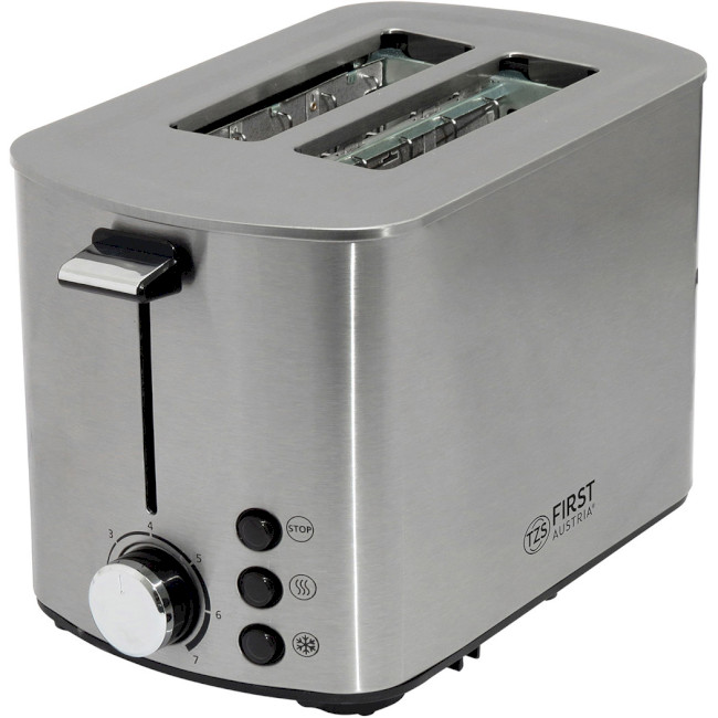 FIRST 005367-3 Тостер First FA-5367-3 обладает компактными размерами корпуса, представленного в серебристом цвете, что позволяет использовать его даже на кухне с ограничением пространства. Модель обеспечивает комфортное пользование, поскольку предусматривает возможность регулировки степени прожаривания хлебных ломтиков. Тостер поддерживает семь степеней обжаривания, благодаря чему вы сможете приготовить такой сэндвич, который подарит настроение на весь день. Тостер First FA-5367-3 обладает мощностью 850 Вт, благодаря чему процесс обжаривания не займет много времени. Конструкция прибора предусматривает два отделения, в каждое из которых вы сможете загружать по одному ломтику хлеба, получая сразу два готовых тоста за один цикл. Это позволит приготовить быстро полноценный завтрак, который на весь день зарядит вас энергией. Изготовлен прибор в прочном корпусе из нержавеющей стали, который подается легкой очистке, что позволяет держать прибор в чистоте Мощность 750-850 Вт Кол-во отделений 2 шт. Кол-во тостов 2 шт. Кол-во степеней поджаривания 7 Автоцентрирование есть Подогрев есть Размораживание есть Аксессуары в комплекте поддон для крошек, решетка для подогрева булочек Материал корпуса нержавеющая сталь Цвет нержавеющая сталь Габариты (ШхВхГ) 290x180x165 мм Вес 1,4 кг