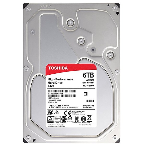3.5" HDD 6.0TB Toshiba HDWE160UZSVA X300, for Desktop™, High-Performance, 7200rpm, 128MB, SATAIII, NCQ, AF для настольного компьютера объем 6000 ГБ форм-фактор 3.5" интерфейс SATA 6Gbit/s скорость вращения 7200 rpm объем буфера 128 МБ ШхДхВ: 101.60х147х26.10 мм , вес: 770 г