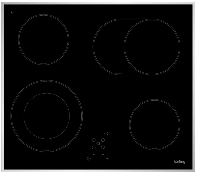 Варочная панель Korting HK62051X vitroceramica стеклокерамическая поверхность 4 конфорки независимая установка защита от детей с рамкой сенсорные переключатели кнопочное управление индикатор остаточного тепла ШхГ: 58х51 см