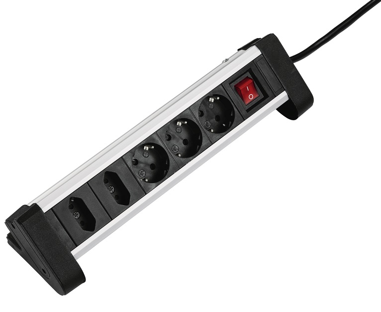 Hama 5-Way Power Strip for Desks, aluminium, black