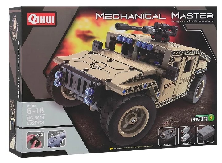 Конструктор QiHui 2in1, Armed Off-road Vehicle, R/C 4CH, 502 pcs, 8014 для мальчика от 6 до 16 лет навыки: логика и мышление, интерес к наукам, моторика и ловкость с двигателем, на радиоуправлении пластик число деталей: 502 шт.