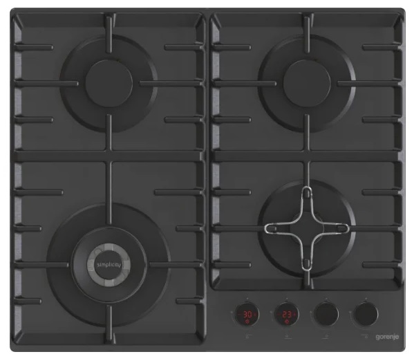 Варочная панель Gorenje GKTW641SYB линейка: Gorenje Simplicity поверхность из закаленного стекла 4 конфорки независимая установка электроподжиг газ-контроль чугунные решетки поворотные переключатели ШхГ: 60х52 см