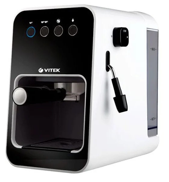 Кофеварка Vitek VT-1504 для молотого кофе давление 15 бар приготовление капучино одновременная раздача на 2 чашки корпус из пластика.Кофеварка Vitek VT-1504