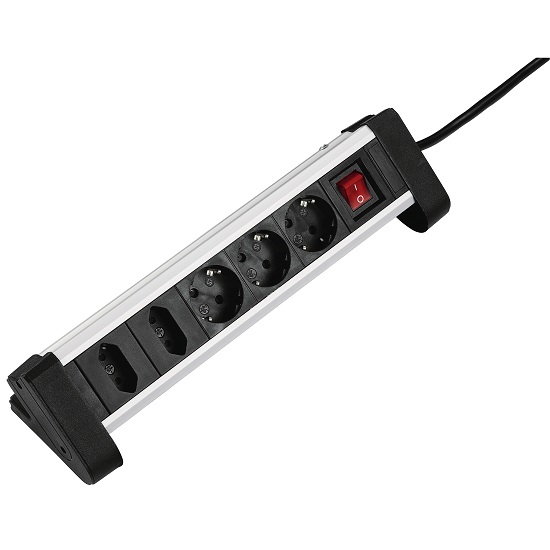 Hama 137203 5-Way Power Strip for Desks, aluminium, black