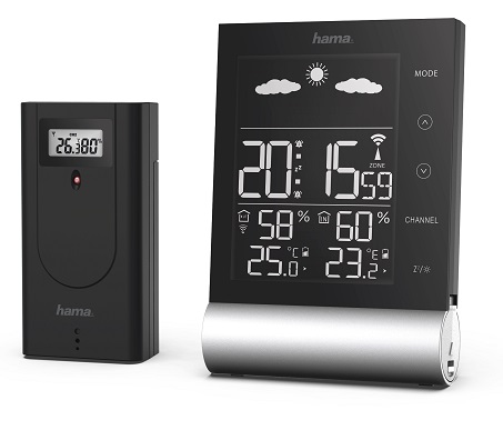 Hama 186417 "Black Line" Weather Station, black Сенсорный датчик для удобного включения подсветки и функции повтора Для любого ракурса: независимо от угла обзора дисплей VA всегда обеспечивает наилучшее высококонтрастное изображение Для лучшей читаемости подсветку можно постоянно включать через адаптер питания. Беспроводные часы DCF с автоматической настройкой времени на самые точные часы в мире Часовой пояс можно установить вручную, когда время DCF отклоняется от часового пояса. Индикация температуры на внешнем датчике Сенсорные клавиши обеспечивают интуитивное управление Отображение прогноза погоды с 7 символами: солнечно, немного пасмурно, облачно, дождливо, сильный дождь, снегопад, сильный снегопад Два программируемых времени пробуждения, удобные, если два человека встают в разное время Сигнализация замерзания активируется при температуре от -1 до +1 ° C, чтобы вы вовремя встали, чтобы поцарапать окна машины или подмести снег