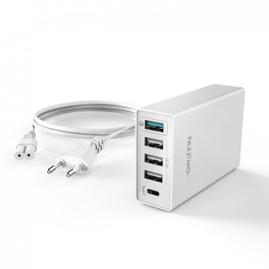 Pazzimo 117403 Charging Station, 5-way, (1x QC 3.0, 1x USB Type-C, 3x USB), 8 A, White