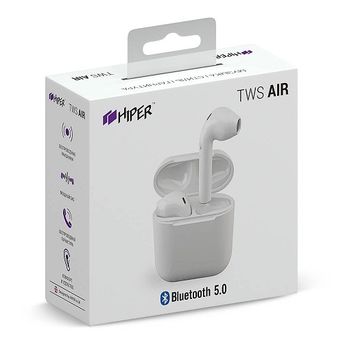 HIPER TWS Air Bluetooth 5.0 In-Ear HeadSet, Li-Pol 2x50mAh+450mAh, white