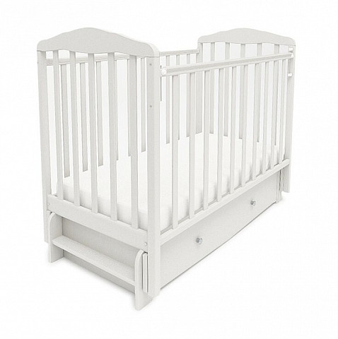 126001 Кровать детская Берёзка с попер. и прод.маятником и ящиком (автостенка, накладка ПВХ, белый) Размер ложа 1200х600 мм белый