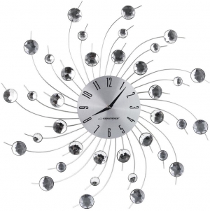 Clock Wall Esperanza GENEVA EHC004 Grey, 50 cm, decorated with diamonds (acrylic glass), Aluminium clock surface, Quiet movement, hook for easy installation, Power: 1x AA battery (not included)