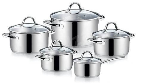 Набор посуды Tescoma Ambition,10 предметов Набор посуды состоит из кастрюль с крышками из стекла и нержавеющей стали, твердыми и герметичными ручками, трехслойным сэндвич-дном и мерной шкалой. Кастрюли изготовлены из высококачественной нержавеющей стали 18/10 и подходят для использования на всех типах плит - газовых, электрических, стеклокерамических, индукционных. Можно мыть в посудомоечной машине. Глубокая кастрюля с крышкой 6,0 л, ¤ 24 см Кастрюля с крышкой 3,0 л, ¤ 20 см Кастрюля с крышкой 2,5 л, ¤ 18 см Кастрюля с крышкой 1,5 л, ¤ 16 см Ковш с крышкой 1,0 л, ¤ 14 см
