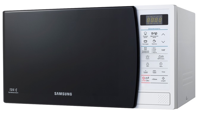 Microwave Oven Samsung GE83KRW-1/BW, 23l, 800W(1100W grill), electronic control, 28.8 cm rotating plate, defrost function,interior lighting, white объем 23 л мощность 800 Вт гриль внутреннее покрытие камеры: биокерамическая эмаль сенсорные переключатели дисплей система равномерного распределения микроволн защита от детей