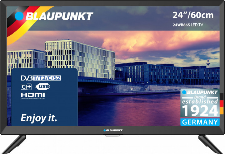 Телевизор 24" LED TV Blaupunkt 24WB865, Black (1366x768 HD Ready, 60 Hz, DVB-T/T2/C/S2) (24", Black, 1366x768 HD, 60Hz,, 1 HDMI, 2 USB (foto, audio, video, USB recording), DVB-T/T2/C/S2, CI+ slot, OSD Language: ENG, RO, RU, Speakers 2x3W, 2.2 Kg) Диагональ экрана 24" Разрешение 1366x768 Smart-платформа Нет Диапазоны цифрового тюнера DVB-C, DVB-S2, DVB-T, DVB-T2 Частота развертки панели 60 Гц