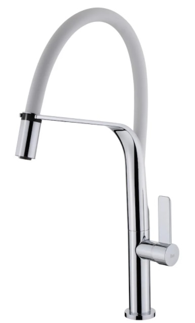 Teka FO 997 white alb (white) Смеситель с поворотным изливом Гибкий поворотный излив на 360? Аэратор с защитой от образования накипи Картридж с керамическими вставками Гибкий шланг из нержавеющей стали покрыт пластиком Вынос: 218 мм Высота: 284/486 мм Цвет: хром + белый