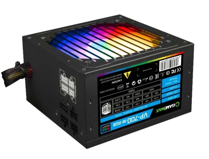 Power Supply ATX 700W GAMEMAX VP-700-RGB-M, 80+ Bronze, Active PFC, 120mm RGB fan, Semi-Modular блок питания ATX мощностью 700 Вт стандарт ATX12V 2.3 охлаждение: 1 вентилятор (120 мм) уровень шума 32 дБА отстегивающиеся кабели размеры (ВxШxГ) 86x150x140 мм