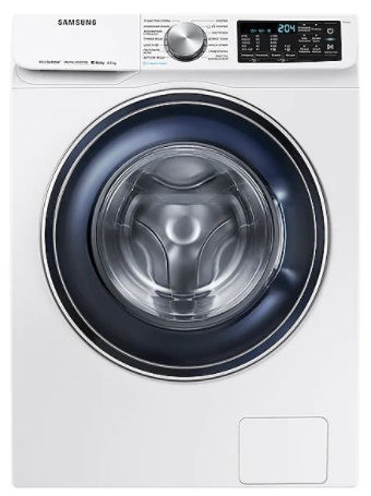 Washer Samsung WW80R62LVFWDLP, White/Blue, Max load - 8kg, Maxi speed - 1200rpm, 85x60x45cm, Depth - 45cm, Invertor, AquaProtect/EcoBubble/Bixby/Smart Check, Download Type - front, Class - A, Display, 8 programm Тип загрузки фронтальная Максимальная загрузка 8 кг Дисплей есть Сушка нет Класс энергоэффективности A Класс стирки A Класс отжима B Скорость отжима 1200 об/мин Расход воды за стирку 48 л Энергопотребление за цикл 1.04 кВтч Уровень шума при стирке 57 Дб Уровень шума при отжиме 73 Дб Количество программ стирки 14 Цвет белый Цвет люка синий Высота 85 см Ширина 60 см Глубина 45 см Вес 55 кг Особенности и функции Защита от протечек воды Aqua protect Производитель Samsung