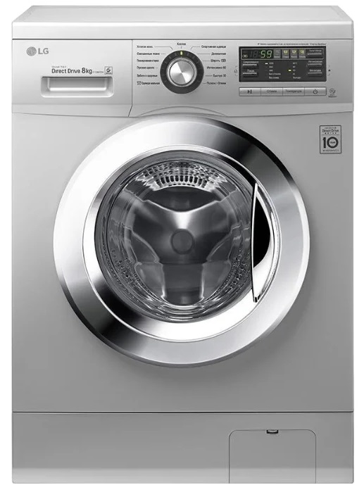 Washer LG F1296TD4, White, Max load - 8kg, Max speed - 1200rpm, 85x60x55cm, Depth - 55cm, Direct Drive, SmartDiagnosis, Download Type - front, Class - A/A/B, Display, 13 programm, 62kg отдельно стоящая ШхГхВ: 60х55х85 см загрузка: 8 кг отжим при 1200 об/мин класс энергопотребления: A электронное управление защита от протечек защита от детей