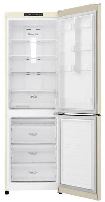 Холодильник LG GA-B419SEJL, Beige, Total volume - 302L, 190.7x59.5x68.2cm, Multi Air Flow, Refrigerator/Freezer volume - 223L/79L, Refrigerator / Freezer - NoFrost, Display, Class - A+ (277kWh), Down Freezer, Temperature regulator - Sensor, 62kg ШхВхГ: 59.50х190.70х65.50 см класс энергопотребления: A+ No Frost общий объем: 302 л инверторный компрессор объем холодильной камеры: 223 л объем морозильной камеры: 79 л однокомпрессорный мощность замораживания: 9.3 кг/сутки перевешиваемые двери