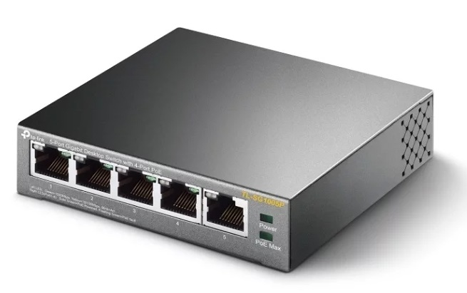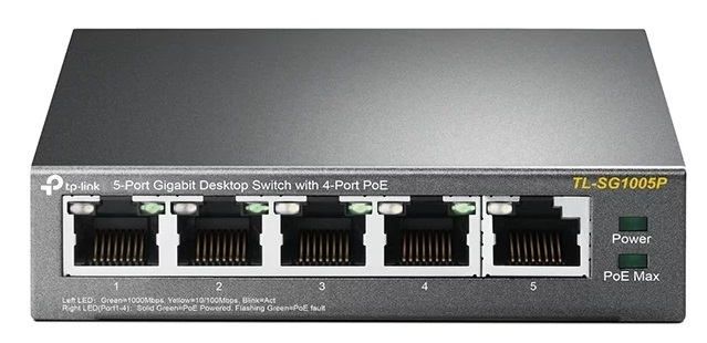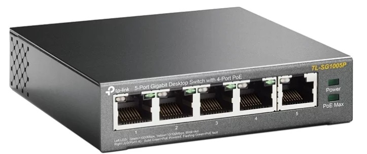 TP-LINKTL-SG1005P,5-PortGigabitDesktopPoESwitch,5GigabitRJ45portsincluding4PoEports,56WPoEPowersupply,steelcase