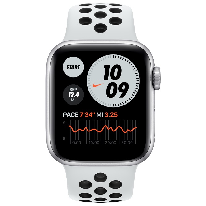 Apple Watch Nike Series 6 GPS, 40mm Silver Aluminium Case with Black Nike Sport Band, M00T3 GPS