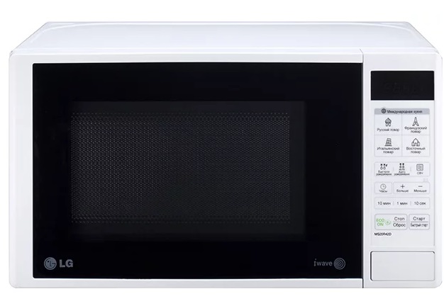 Микроволновая печь LG MS20R42D объем 20 л. мощность 700 Вт внутреннее покрытие камеры: эмаль кнопочные переключатели дисплей система равномерного распределения микроволн защита от детей Tip solo Panou comanda digital Display digital da Ceas digital da Capacitate 20 litri Diametru platou rotativ 24.5 cm Deschidere usa buton Putere microunde 700 W Nivele Putere 5 Iluminare interioara da Semnal sonor da Latime 45.5 cm Inaltimea 28.4 cm Adancime 31.2 см Culoare alb Greutate 9 kg Producator LG