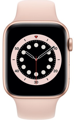 Apple Watch 6, Gold, 44mm, Aluminium Case with Pink Sand Sport Band, GPS (M00E3)