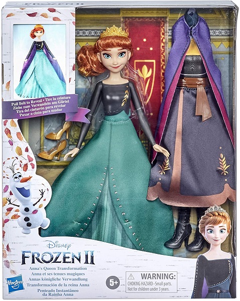 FRZ 2 TRANSFORMING FINALE ANNA Холодное сердце 2 Принцесса Анна "Волшебное превращение" Принцесса Анна с рыжими длинными волосами, которые можно расчесывать, укладывать в прически и заплетать в косы. Теперь можно менять не только наряд Анны, но и ее обувь, и прическу. Легким движением рук дорожный наряд можно поменять на более праздничный лук с тканевой длинной зеленой юбкой и элегантные туфли. В комплекте есть корона и заколка для волос, если заплести волосы Анны в косу или чтобы фиксировать отдельные пряди в прическе. Рост куклы: 28 см В наборе: куколка Анна, дополнительный наряд (платье с накидкой и сапоги) Рекомендуемый возраст: 5 лет + Frozen Papusa Anna "Transformarea Finala" Prin?esa Anna are parul lung, ro?cat si poate fi pieptanat, coafat ?i impletit. Acum pute?i schimba nu doar ?inuta Annei, ci ?i pantofii ?i coafura ei. Cu o mi?care u?oara a mainilor, pute?i schimba ?inuta de drum cu o funda mai festiva cu o fusta lunga din stofa verde ?i pantofi elegan?i. Setul include o coroana ?i o agrafa pentru par daca impleti?i parul Anna sau pentru a fixa fire individuale in par. Inal?imea papu?ii: 28 cm In set: papu?a Anna, ?inuta suplimentara (rochie cu pelerina ?i cizme) Varsta recomandata: 5 ani +